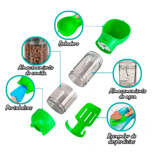 Botella portátil 4 en 1 multifuncional para mascotas 🐾 PetFlow Go
